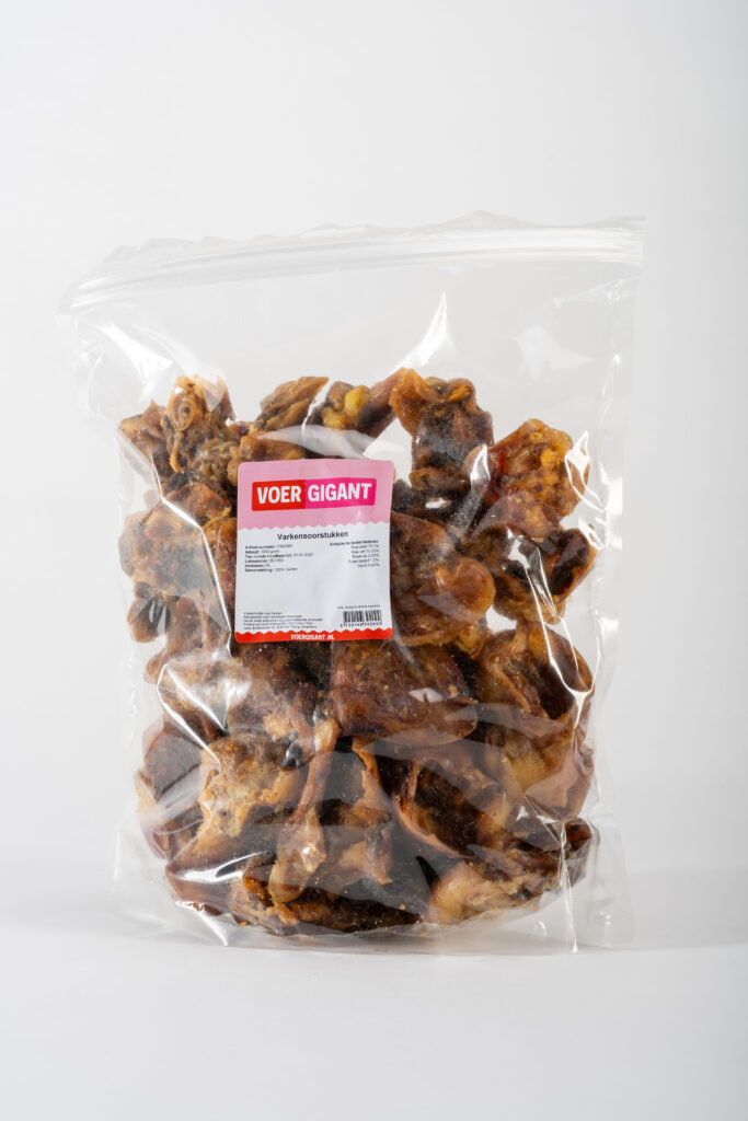 De Varkensoorstukken 1 kilo van Voergigant.com is een natuurlijke kauwsnack waar iedere hond dol op is. Rijk aan eiwitten, ondersteunt een gezond gebit en zorgt voor urenlang kauwplezier.
